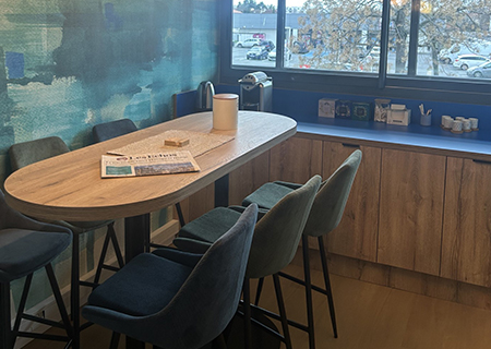 Bee Welcome ! Nous vous acceuillons au coin café – thé et dans l’espace détente.